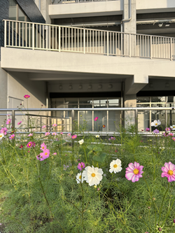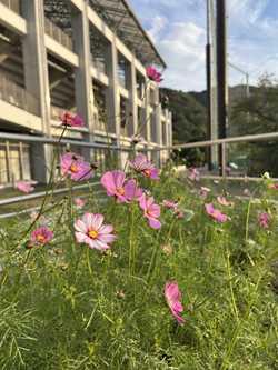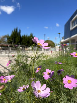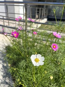 むつみパークではプール前のコスモスが風に揺れ、ゆらゆらと咲き誇っています。