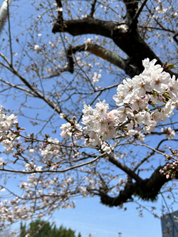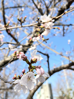 公園内の桜の木も、寒さの中めいっぱい膨らんだつぼみが、ポツポツと咲き始めています。